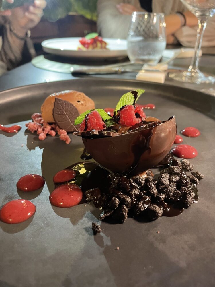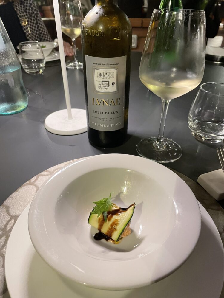 Tra i dessert Er Magozzo goloso maritozzo con crema di mango e panna e 5 Sfumature di Cioccolato con diverse consistenze di cioccolato e lamponi. La carta dei vini comprende varie regioni con piccole chicche rappresentative.
