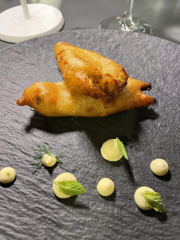 Accenti fortemente romani si trovano nei Fiori di Roma, in pastella con alici, Bufala e maionese al lime e menta e nel Cosciotto di Pollo San Bartolomeo alla romana con peperoni alla brace marinati al basilico e origano.