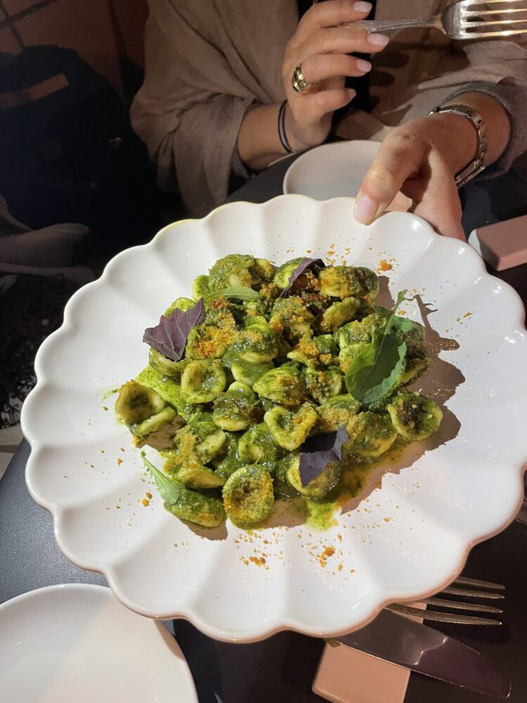 Sapori del Sud- orecchiette con pesto di capperi e olive con datterino giallo e polvere di taralli pugliesi