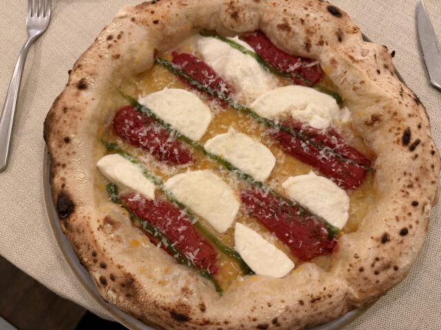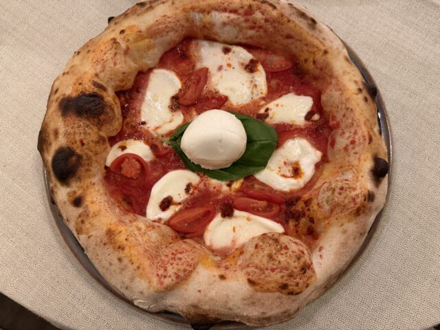 I topping seguono la stagionalità e costruiscono un ponte ideale tra Campania e Toscana: dal pomodoro San Marzano alla pasta di Gragnano, dalla provola di Agerola all’olio extravergine di Caiazzo, fino alle carni della Macelleria Lenzi, realtà locale con allevamento interno.