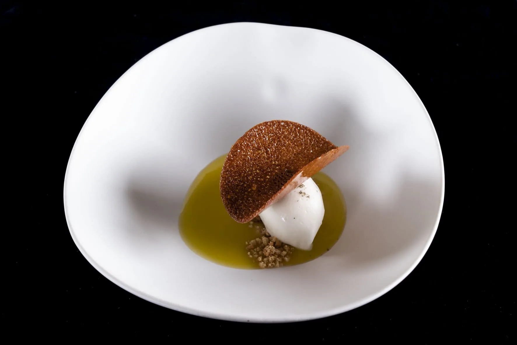 Valeria Piccini, Emulsione d’arancia, olio e gelato al latte di capra