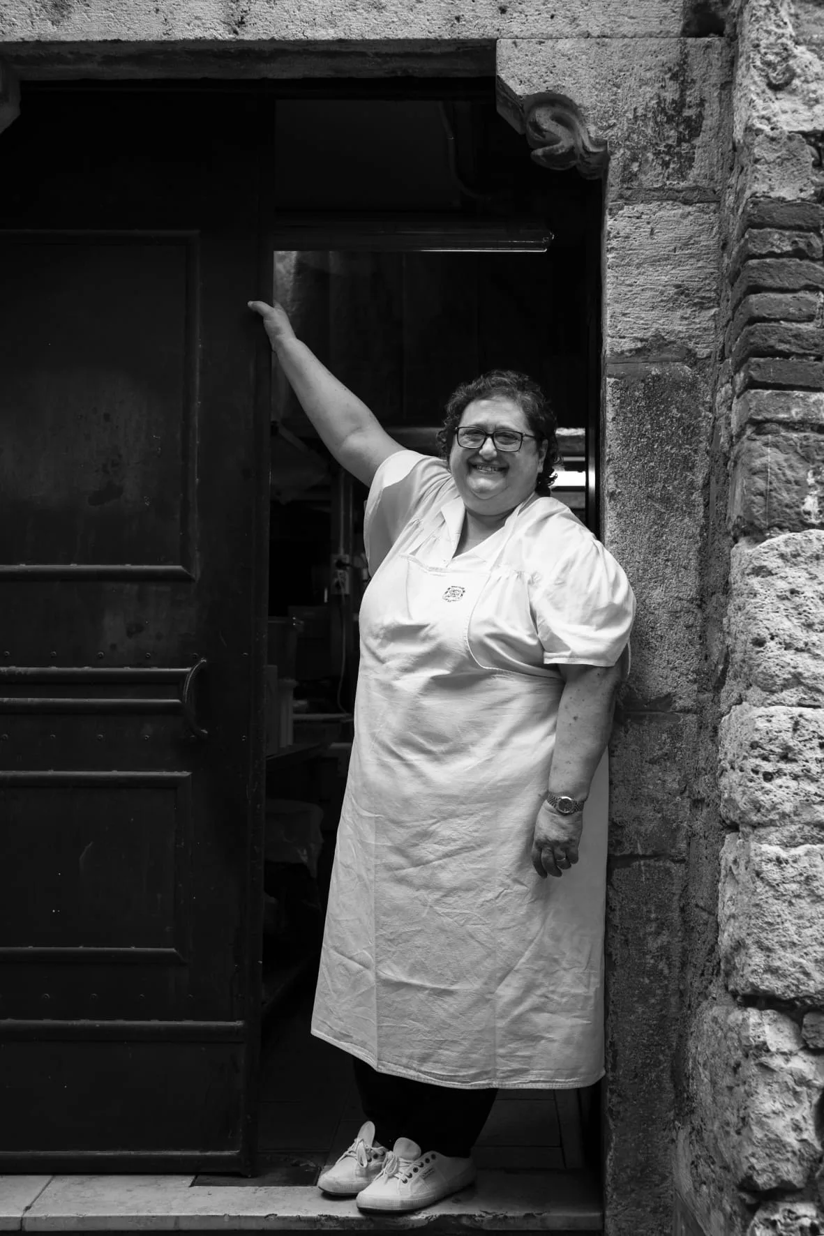 <<Da Caino, la trattoria aperta nel 1971 e gestita da mia suocera Angela e dal marito Carisio (detto Caino) insieme a Maurizio, ci sono cresciuta. Uscita da scuola la mia tappa era lì in cucina, ad osservare e ad aiutare Angela che è stata la mia prima maestra. Le basi della cucina le avevo già acquisite in famiglia, ma non avevo mai cucinato per gli altri. I piatti proposti erano quelli tradizionali toscani, anzi meglio dire maremmani: il cinghiale, l’acqua cotta, la ribollita, le bistecche alla brace, quel grandissimo piatto che è il Buglione, una sorta di zuppa che veniva realizzata con i pezzi meno pregiati delle varie carni (pollo, coniglio, agnello) cotti con aromi vari e pomodoro e servita con il pane bruschettato. Oggi si fa solo con agnello utilizzando sempre i pezzi meno pregiati, ma quel piatto lì era un vero e proprio manifesto di cucina sostenibile. D’altra parte, per noi nati e vissuti in campagna il concetto di sostenibilità è un fatto scontato. Il contadino è abituato a mangiare ciò che produce e allo stesso tempo a non scartare via niente, degli animali, ad esempio, si mangiano innanzitutto le parti che sono soggette a deteriorarsi prima, come le interiora>>.