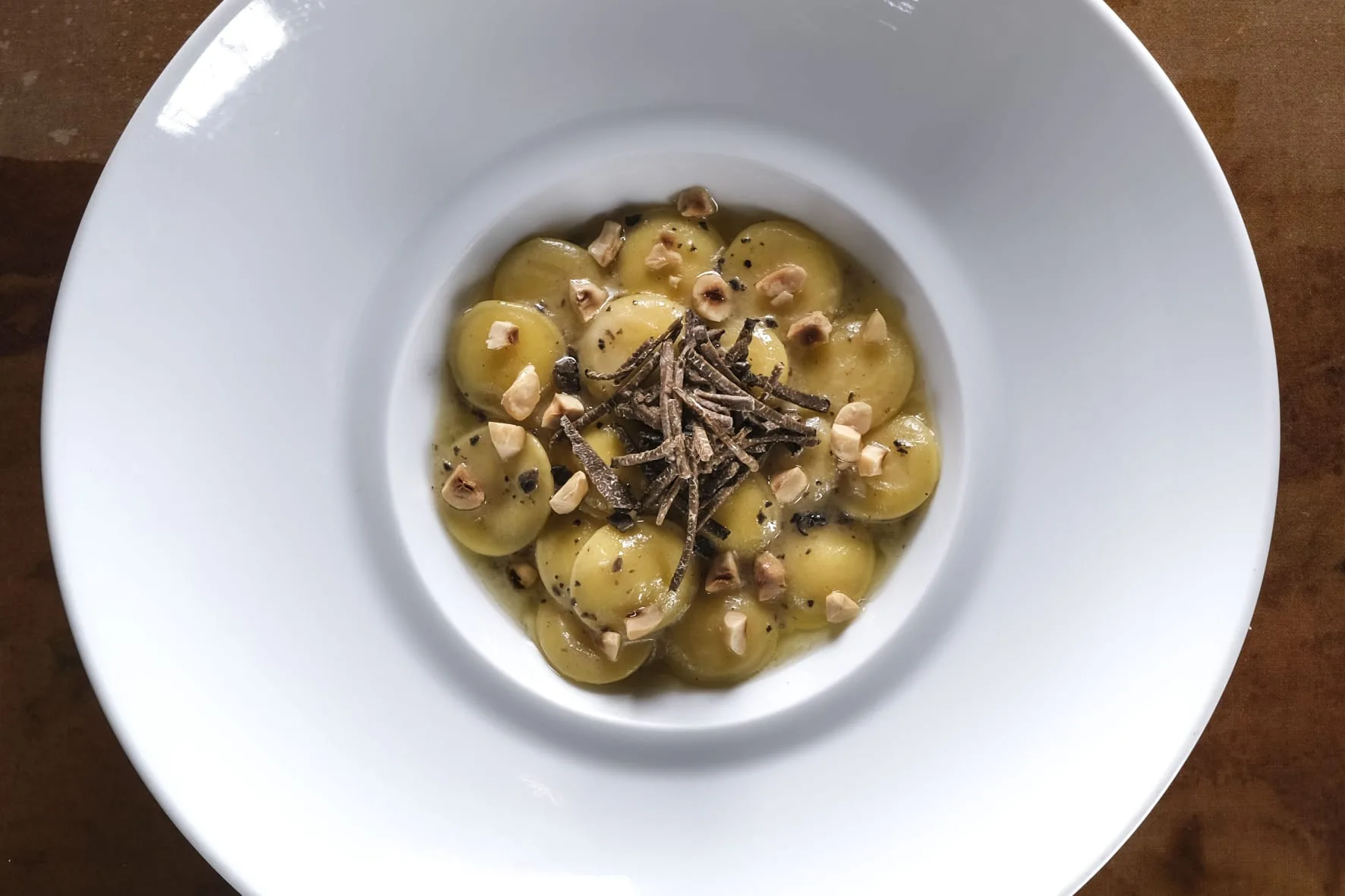 Di grande eleganza l’anguilla con ricotta e sedano e la sogliola con radici e vongole, mentre le lumache con crema di fagioli raccontano i sapori familiari che, grazie a Valeria, diventano contemporanei.