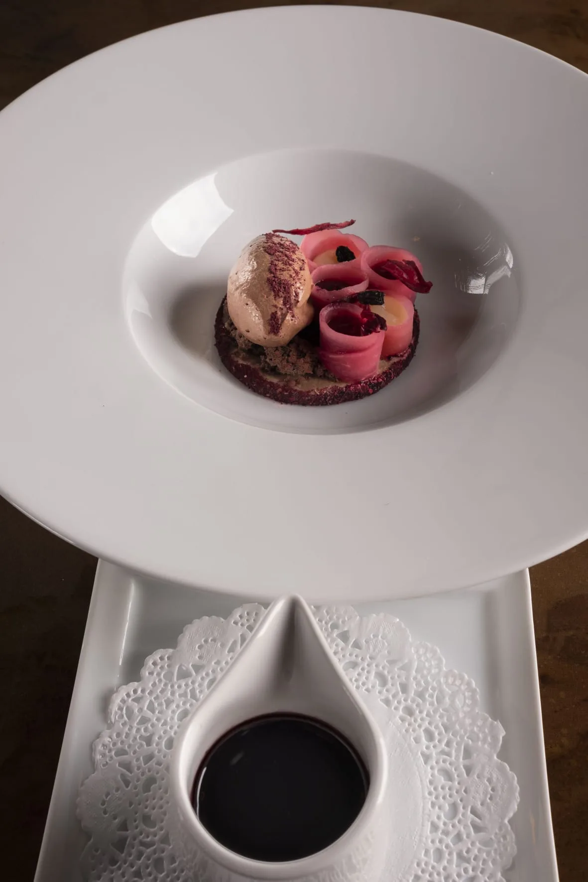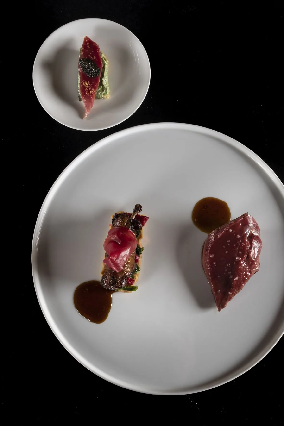 In omaggio alla grande tradizione maremmana, il cinghiale marinato al whisky con rape rosse e il piccione con mandorle ed alghe che introduce la nuova fase creativa della chef che trae ispirazione dal mare.