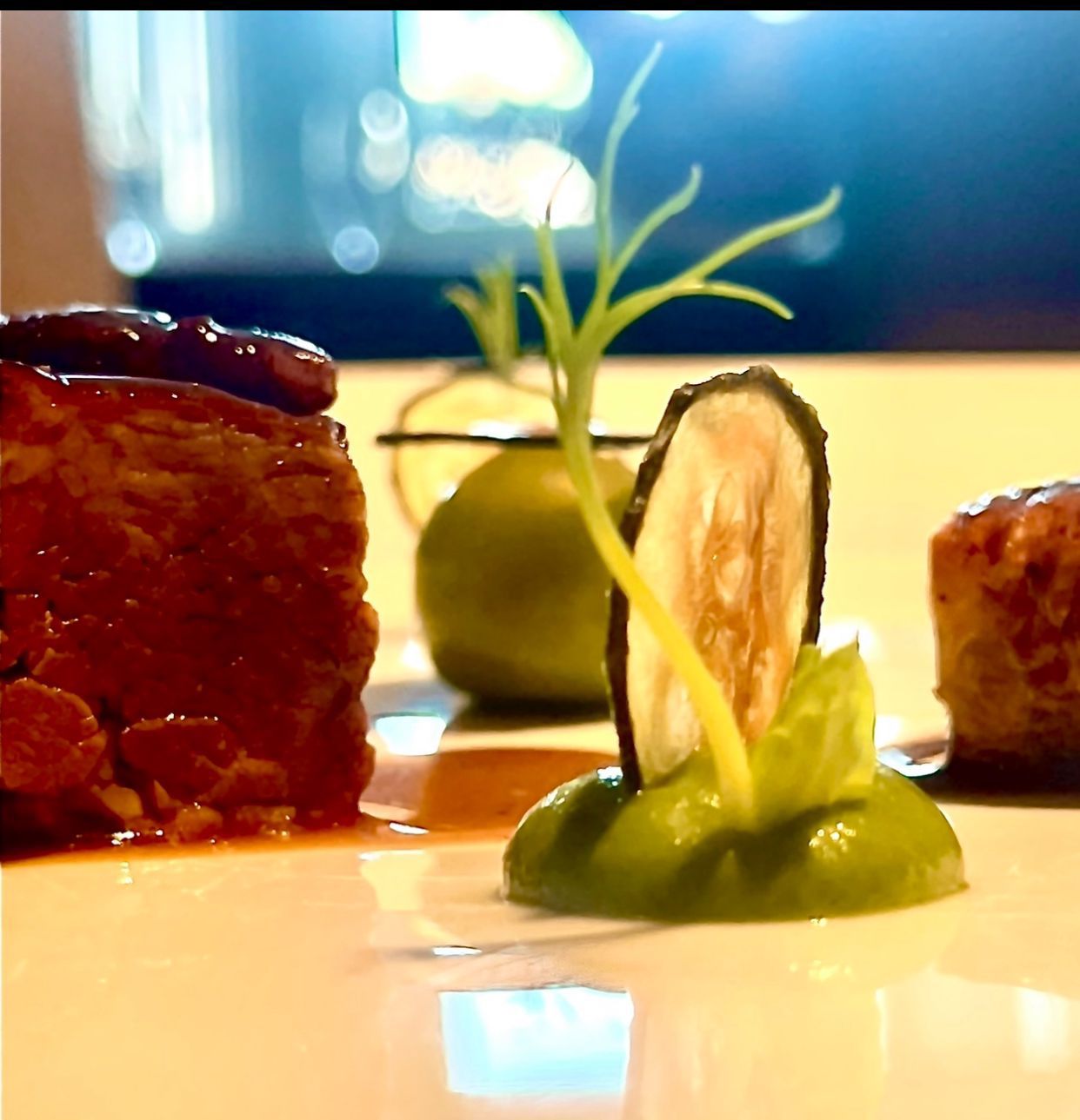 Grande mano anche con la carne: 20 Ore ovvero stracotto di manzo, patate, soia, cioccolato e bon bon di zucchina alla Nerano.