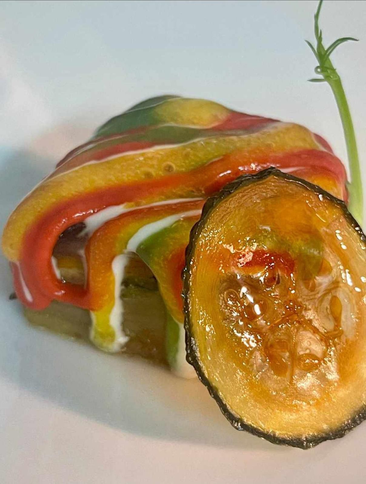 Non manca il piatto totalmente vegetale: Green è la terrina di verdure dell’orto, (quelli pompeiani sono storicamente famosi) in salsa di zucca e zenzero.