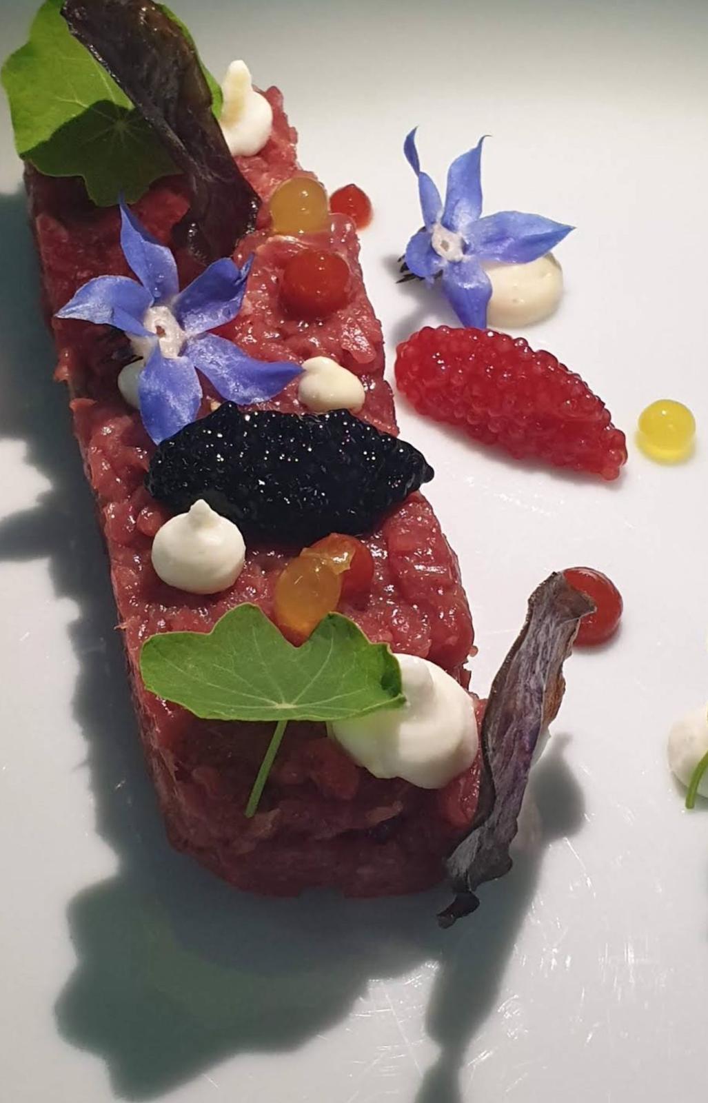 La Tartare di chianina, maionese di aglione toscano, alici e caviale.