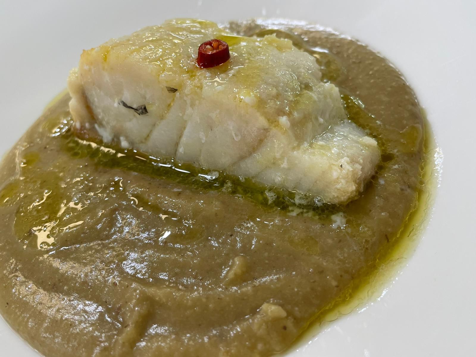 Buonissimo il maracuoccio, antico e prezioso legume che si trova solo in una ristretta zona del Cilento, con erbe spontanee ripassate in padella.