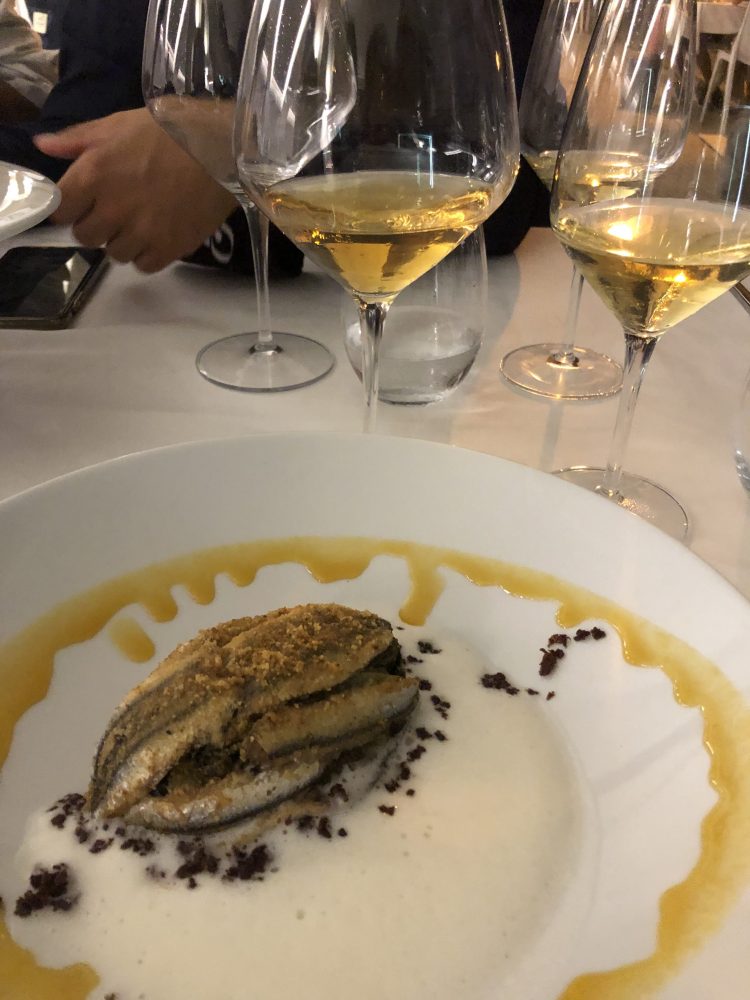 Lux – Sandwich di alici con ripieno di scarola, terra di olive e caramello salato