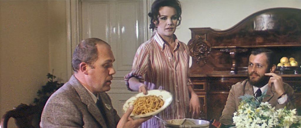Il cibo come arma di sopraffazione nel rapporto tra i sessi fa capolino in L’Harem (1967), pellicola in genere considerata minore, concepita come commedia grottesca e trasformata in corso d’opera in un dramma vero e proprio. La rivolta dei maschi (Gastone Moschin, Renato Salvatori, William Berger, Michel Le Royer) coinvolti dalla bella Carroll Baker nell’impossibile idea di un harem alla rovescia a servizio di una femmina indipendente, si sviluppa in un crescendo di sopraffazione che passa attraverso la riduzione della donna al suo ruolo tipico in una società maschilista, quello di casalinga: in un momento di sottile crudeltà i quattro la costringono a cucinare un piatto di bucatini, per poi deriderne l’abilità di cuoca («Il minimo che si richiede a una donna è che sappia cucinare…»).