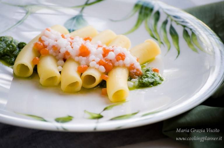 La ricetta vincitrice del contest più amato dal 2.0. Maccheroni con acqua di pomodoro, salsa al basilico e caviale di pomodoro e mozzarella
