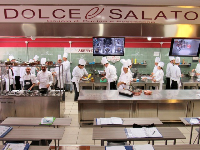 Alla Dolce & Salato, dato importante da sottolineare, ogni partecipante gode di una postazione e di un corpo docente interno assistito da efficaci collaboratori, che insieme, coadiuvano con attenta dedizione l’operato dei corsisti su tutte le preparazioni.