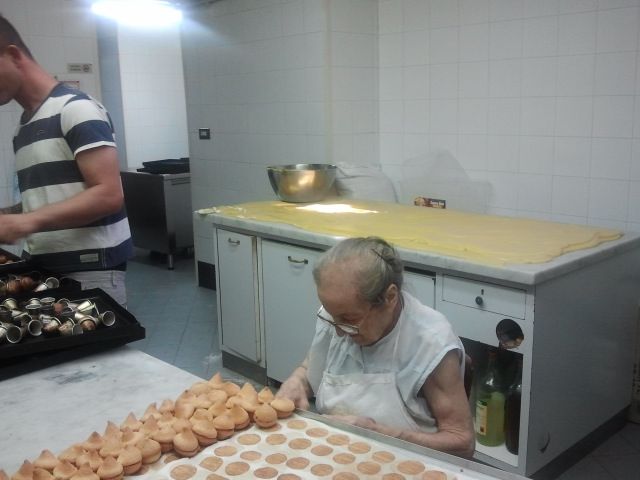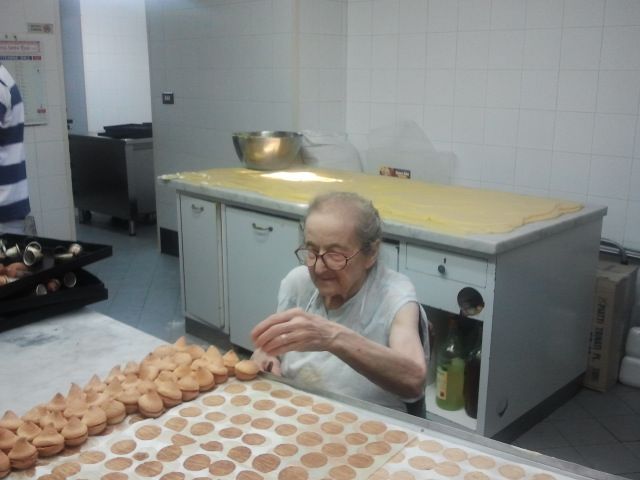 La pioniera Maria è ancora l’esempio a cui i nipoti si rivolgono. Nonostante il passare degli anni è lì, intenta a pelare manualmente le mandorle o a intagliare i sospiri.