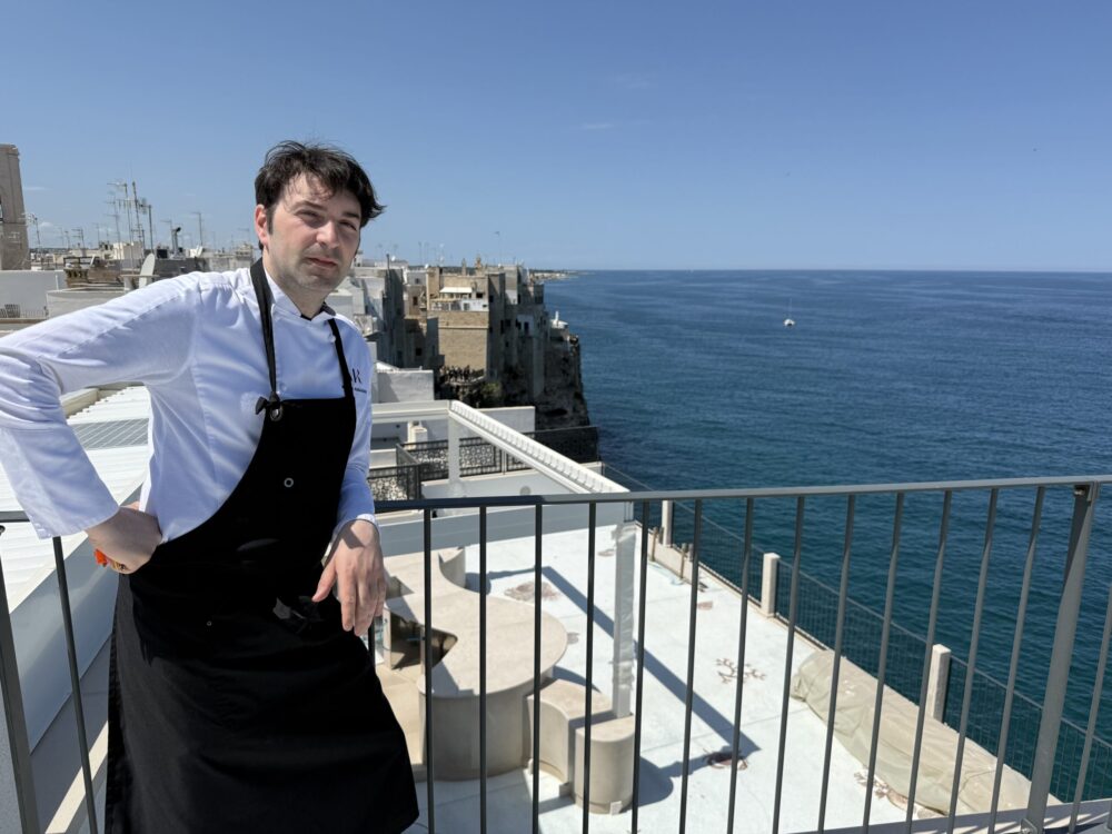 Dalla terrazza del ristorante Casanova a Polignano Mare, in una giornata di vento e sole, Martino racconta i suoi progetti ed è un mare in piena, come quello di Polignano che si infrange subito sotto il piano di calpestio di Grotta Palazzese, la sua casa in Puglia.