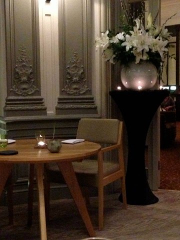 Svecchiata completamente la sala, dove ormai solo gli stucchi alle pareti ricordano i fasti dell’inizio del secolo scorso, ed incorniciano moderni ed essenziali pannelli color verde acido e due splendide sfere di cristallo. A contrasto, il legno nordico dei tavoli e delle sedie che tanto piace a Rogan (quasi stile Ikea, come ha ricordato una penna un po’ velenosa sul Guardian); mise en place ultra minimale, con micro-tovagliette che effettivamente suscitano qualche perplessità.