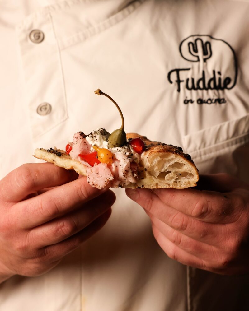 Fuddìe Pizza e Cucina, nella sua essenza comprende la spinta iniziale di Rosalba: trasformare una passione in un mestiere, concedersi il salto da osteopata mestiere dominato dalla precisione, dalla manualità e dall’ascolto del corpo, all’attività gastronomica fra dischi di pasta, farciture, cotture.