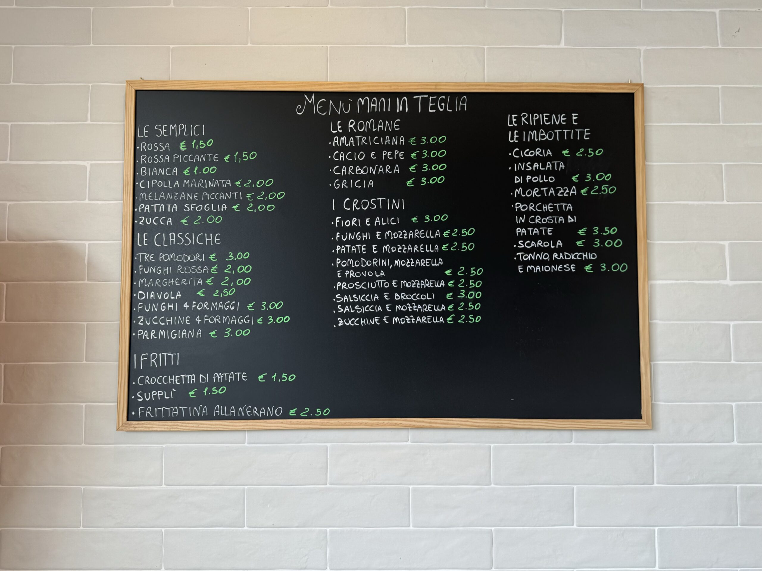 Menù – Mani in Teglia -Pizza alla romana al taglio 24/10/2024 Torna a: Mani in Teglia: pizza alla romana al taglio a Caserta Menù – Mani in Teglia -Pizza alla romana al taglio← Precedente