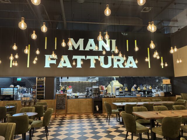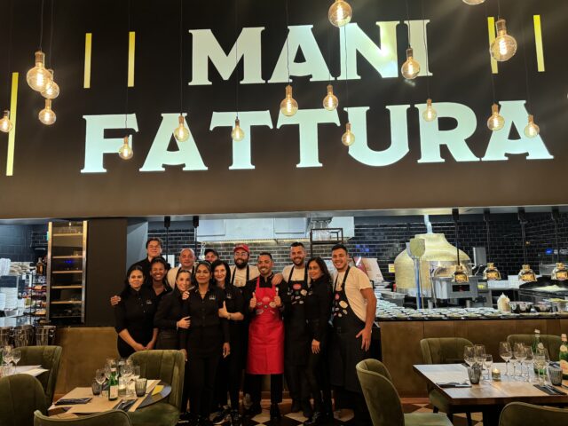 La pizzeria Manifattura, con 150 coperti, arredo elegante, cucina e forno a vista, è sempre piena. Il locale coniuga estetica curata e calore mediterraneo.Il nome riflette l’anima del progetto: fare le cose con le mani, in modo artigianale, senza scorciatoie. Il banco pizza è un palcoscenico, così come il forno. Il locale si rivolge a una clientela attenta alla qualità e alla sostenibilità, e aperta alla scoperta di sapori autentici. Oltre la pizza c’è anche la pasta (quella di Gragnano), alimento principe della cucina italiana.