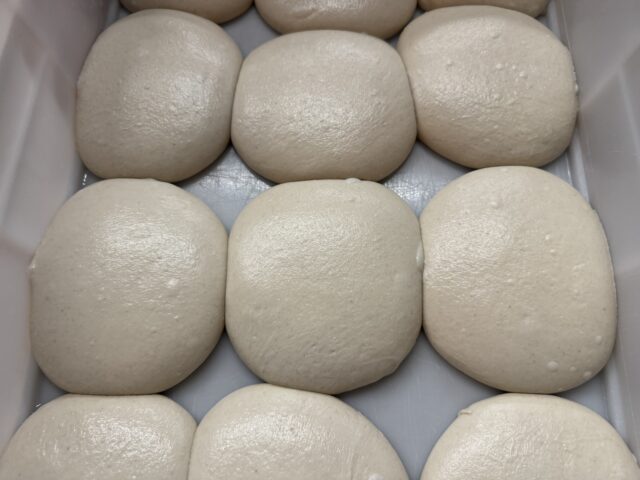 Giovanni Viterale è il pizzaiolo resident, ma anche il direttore del locale Manifattura, del Bar Roma e della struttura alberghiera che fanno capo alla holding svizzera proprietaria. Ha 38 anni, vive da cinque anni in Svizzera e da tre è a Basilea da Manifattura. Prima di arrivare qui, ha girato il mondo. Nasce a Rofrano, nel paese del pane dove la tradizione dei fornai precede la fama della località. È in un forno gestito dai cugini che muove i primi passi: un’esperienza che segnerà il suo futuro. Svogliato a scuola, alterna il percorso scolastico alla panificazione, lavorando di notte nel forno. Dopo il diploma, collabora presso strutture alberghiere del Nord Italia come commis di sala e barista, conseguendo anche il diploma da sommelier. Parte per l’Australia con l’idea di una vacanza di una settimana, che si trasforma in quattro anni. Fa l’operaio, il cameriere, poi, alla scadenza del visto, torna in Italia. Vorrebbe ripartire, ma motivi familiari lo trattengono nel Cilento. Riprende il lavoro di fornaio nel suo paese e decide di approfondire il mondo degli impasti e delle lievitazioni, stavolta legati alla pizza. Si trasferisce a Bagnoli, all’Antica Pizzeria da Gennaro, dove Fabio Cristiano gli apre le porte del mestiere. Da lì, una serie di collaborazioni lo porta nel 2020 a Zurigo, da Napulé, una pizzeria d’asporto dove sforna oltre mille pizze al giorno. L’anno successivo, arriva l’occasione di misurarsi con una nuova realtà a Basilea: Manifattura, ha appena aperto e gli offre carta bianca per forno e banco. Il suo impasto diretto, fedele alla tradizione ma con uno sguardo alla contemporaneità, piace molto. La cottura ricorda vagamente quella della pizza romana, con una base più croccante: una scelta che conquista il pubblico locale.