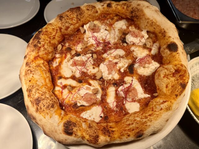 Durante una delle serate italiane, una serie di eventi mensili di degustazione, si è tenuta una cena a sei mani che ha messo in evidenza stili, personalità e tecniche di tre pizzaioli: Daniele Gallotta, pizzaiolo napoletano di Washington D.C., in tour mondiale per promuovere l’arte bianca; Luigi Piscitelli, pizzaiolo di Diametro 31 a Lugano (locale di Danny Aiezza); Giovanni Viterale con il team di Manifattura.