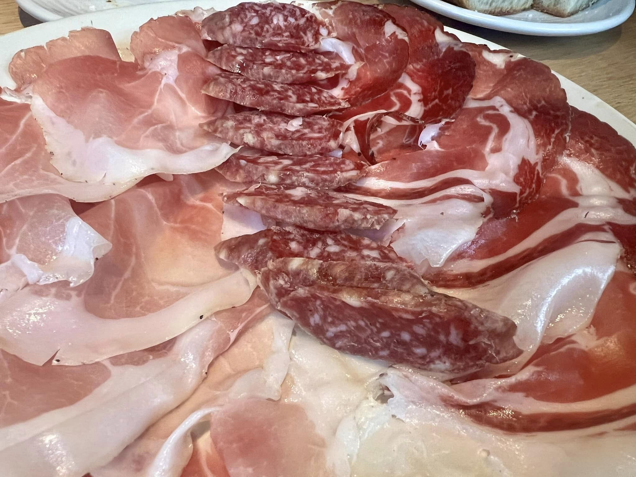 La cura per i dettagli si estende alla salumeria interna del locale, dove vengono prodotti salumi e insaccati utilizzando carni di razze britanniche autoctone, che coniugano il patrimonio della tradizione italiana con le eccellenze locali.
