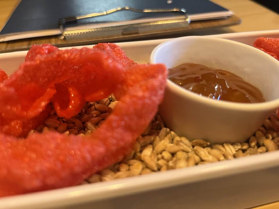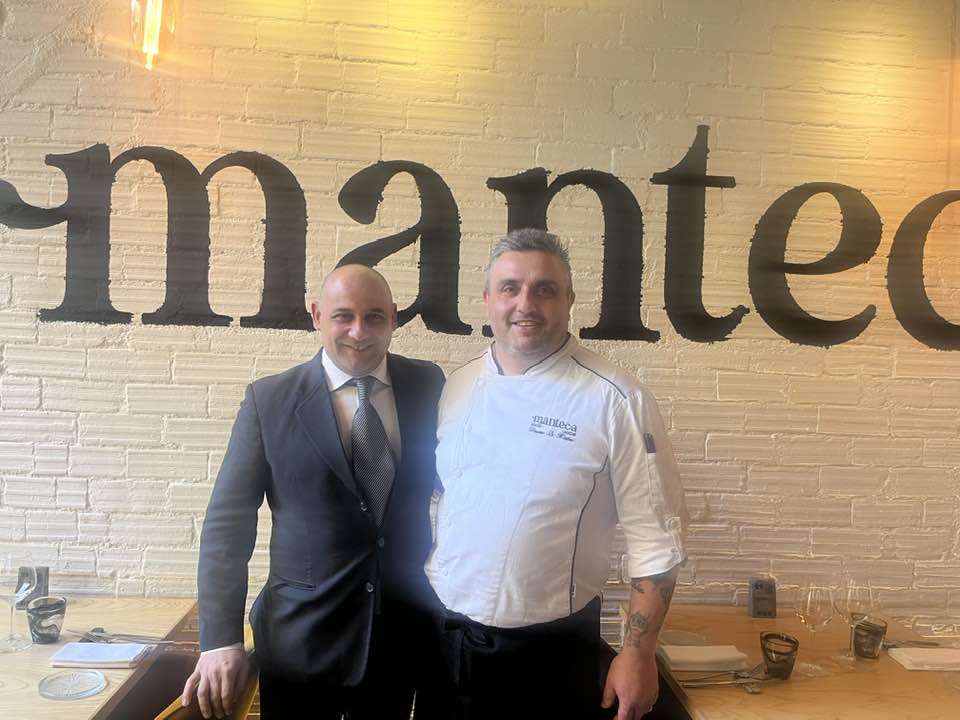 Manteca, nome omen è un bel locale del centro di Salerno, con cucina a vista, che ha in Gaetano Morese il suo executive chef, che però oggi fa il cliente e pranza con me. E qui, apro una parentesi, Gaetano è per me uno dei più talentuosi chef della provincia di Salerno, un pensiero che mi accompagna da quando, tanti anni fa, un suo raviolo ripieno di minestra maritata mi rapì irrimediabilmente.