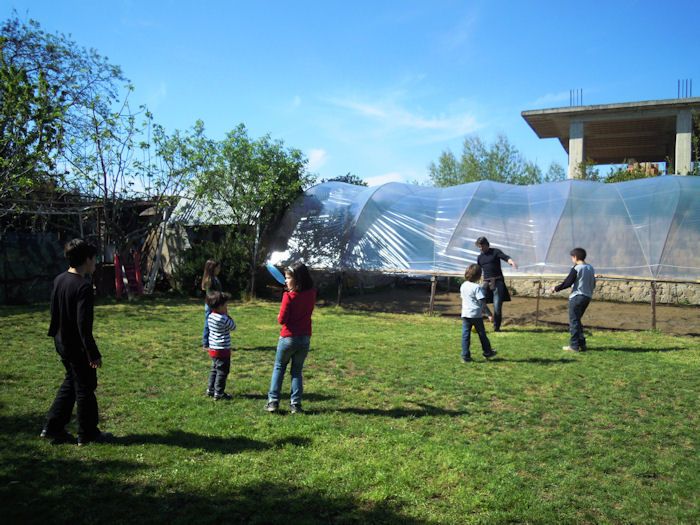 Nell'orto di Hosteria Via Trentola sono visibili i filari di aglio, lattuga, finocchi, broccoli neri, fave