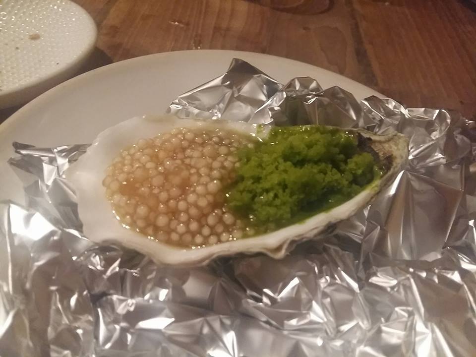 - Ostrica alla brace, tosazu, rabarbaro, salmoriglio