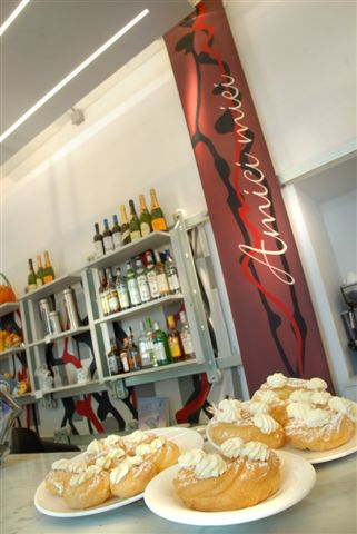 Diventato subito un luogo “cult” del cappuccino torinese la pasticceria “Amici Miei” è oggi uno degli indirizzi golosi di Torino, dove il pubblico può assaggiare una selezione di dolci del sud, accanto ad alcune specialità tipiche del nord (squisiti i piccoli bignè piemontesi).