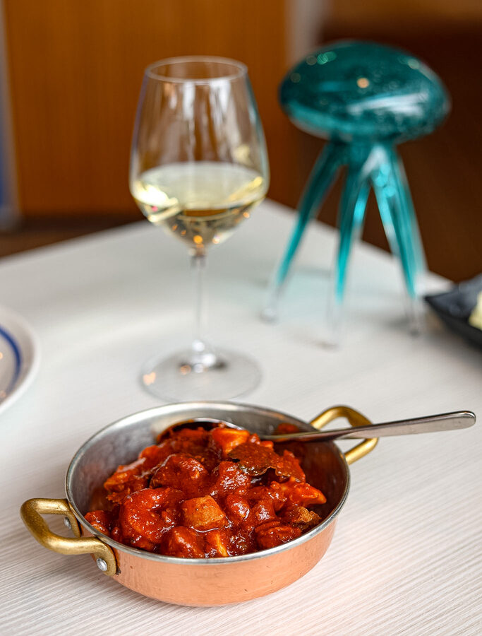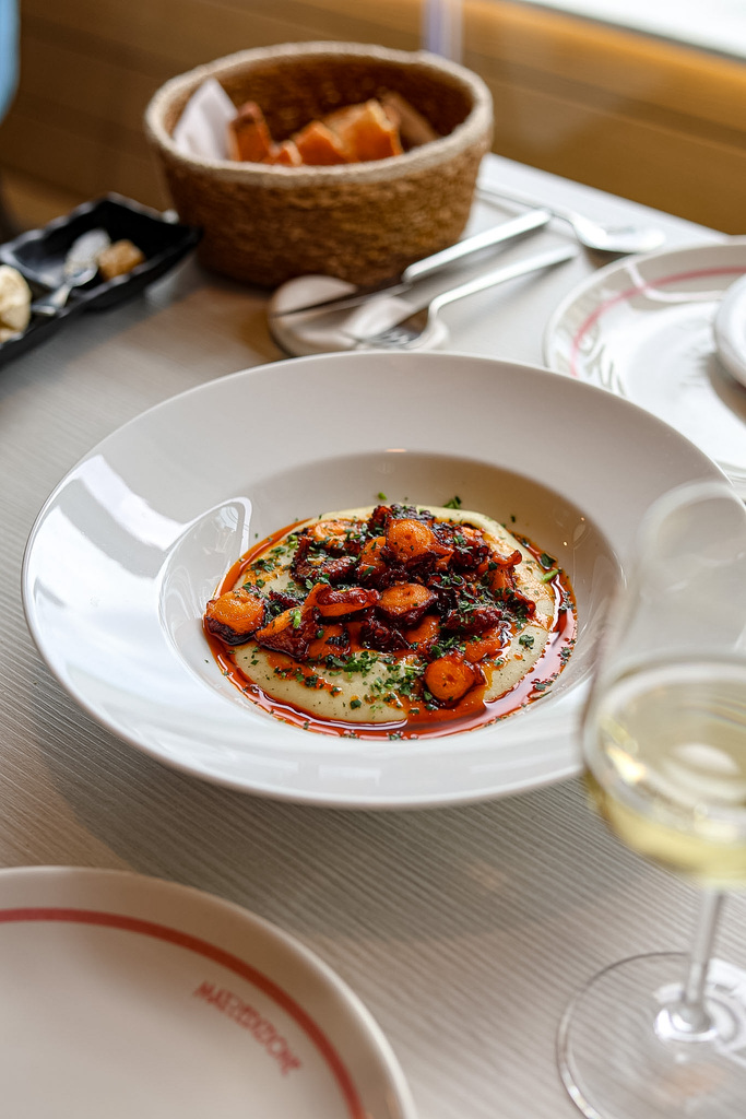 Poi pane, burro e alici del Cantabrico: semplicità assoluta, ma eseguita con precisione. Un piatto che dimostra come la grande cucina sia spesso essenziale, ma mai banale.