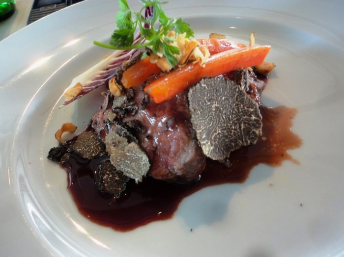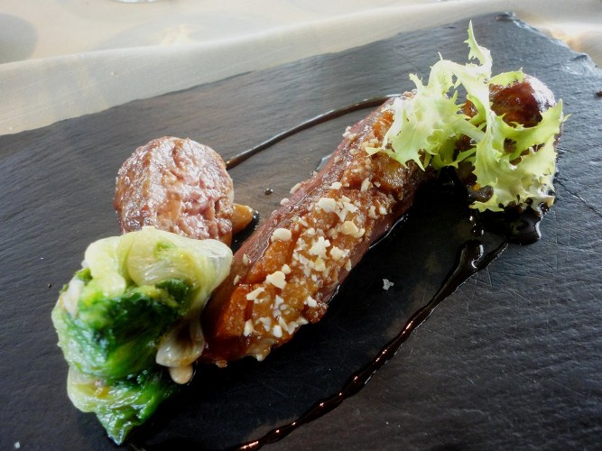 Si tratta di un vitello da latte, di età 6/7 mesi, alimentato quasi esclusivamente a latte, che ha una carne bianchissima e tenerissima. Ottima la materia prima, ma un filino slegata con il resto della composizione del piatto.