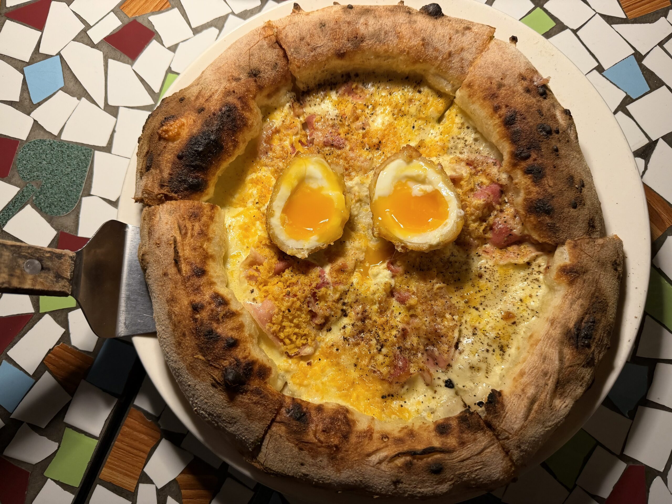 CARBONARA-Crema-di-pecorino-mozzarella-fior-di-latte-uovo-disidratato-guanciale-croccante-uovo-cotto-a-bassa-temperatura-e-fritto-pepe-nero-Margheri