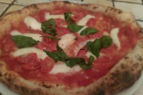 Preparazione del panetto di pasta con minimo 18h di lievitazione e maturazione, stesura dello stesso con farcitura degli ingredienti su elencati, cottura 60/90 secondi in forno a legna napoletano.