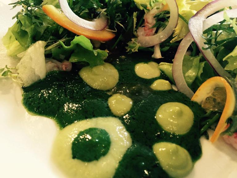 Insalata cotta e cruda: ancora più buona dell’ultima volta, una esplosione della potenza gustativa dell’orto vulcanico che non ha paragoni con altri territori, lo sberleffo del fegato che regala la sensazione di grasso senza inficiare l’essenza vegetale del piatto.