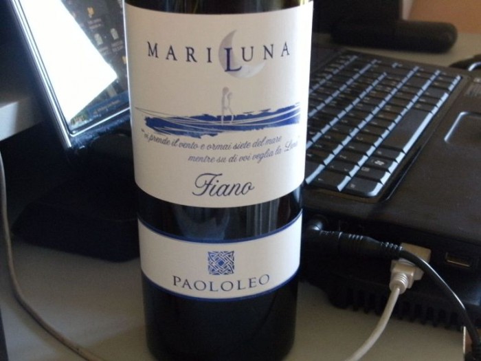 E allora vediamo di capirci qualcosa meglio, con una bottiglia denominata Mariluna Fiano Puglia Igp 2012 delle Cantine Paolo Leo con sede a San Donaci di Brindisi. L'etichetta ha conquistato il primo posto a Radici del Sud nella categoria “Vini bianchi da vitigni autoctoni pugliesi (Minutolo, Fiano e Bombino) ” da parte della giuria internazionale. La proprietà ci tiene a precisare che si tratta del vero “Fiano” che insiste sul territorio regionale da molti secoli e questo mi sembra oggettivamente positivo, tanto da sgombrare il campo da ogni malinteso.