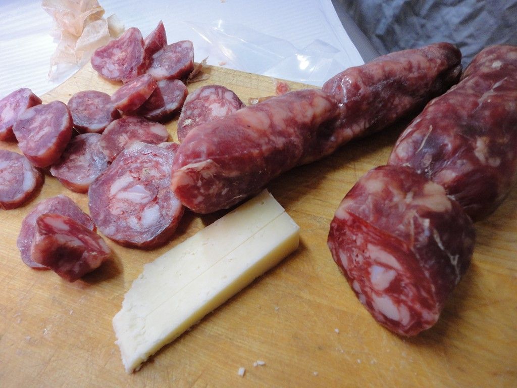 Ci ha stupìto con i sapori veri dei suoi salumi che generosamente ha affettato durante la visita. Notevole la pancetta tesa, ma anche quella arrotolata, la salsiccia e la soppressata. Ma la “poesia” del guanciale aromatizzato all’aglianico è stata un’esperienza senza pari…La scioglievolezza e la complessità aromatica del salume ha letteralmente rapito sia il sottoscritto che Luciano e Giancarlo, al punto che le nostre manine, velocemente prensili, rendevano difficile a Mario lo stare al passo con i tempi di affettatura. Ma non finisce qui, le splendide selezioni di formaggi esposte, a cominciare dal Carmasciano di D’Apolito Letizia, il caciocavallo di Vittorio Sorrentino, il pecorino Bagnolese, tutti prodotti che nascono da piccole aziende che fanno della qualità la loro ragion d’essere…Tutto quello che potete trovare nella macelleria Carrabs ha origine da piccole e piccolissime aziende che curano il processo produttivo con tanta passione e soprattutto in prima persona. Questo è il segreto di…Mario!!!