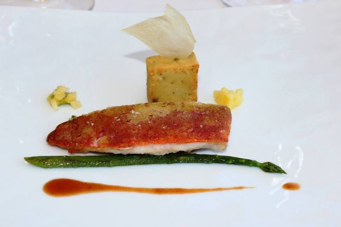 Una mano e felice e precisa nella cottura del pesce che diventa croccante con la panatura, l’aromaticità della panissa di ceci lo completa.