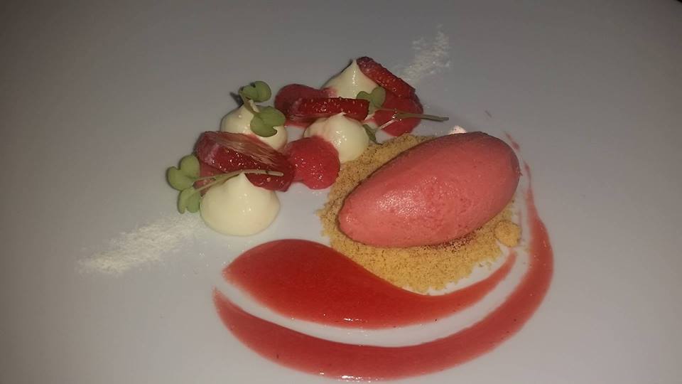 L’agnello Laticauda è invece servito con mela annurca, salsa di cipollotto e il suo fondo. Per entrambi i piatti è la cottura delle carni a sorprendere, ben eseguita e capace di esaltare la qualità sia del pollo che dell’agnello e sapientemente accompagnata dalle salse e le proprie verdure.