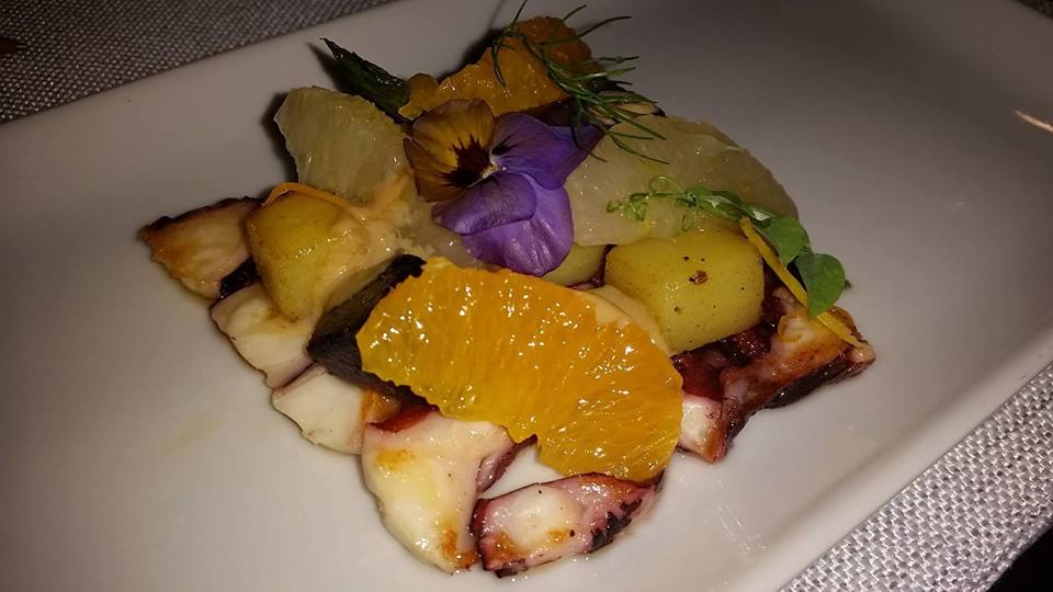Masseria Guida – Benvenuto dello chef, polpo scottato con agrumi e riduzione di vongole