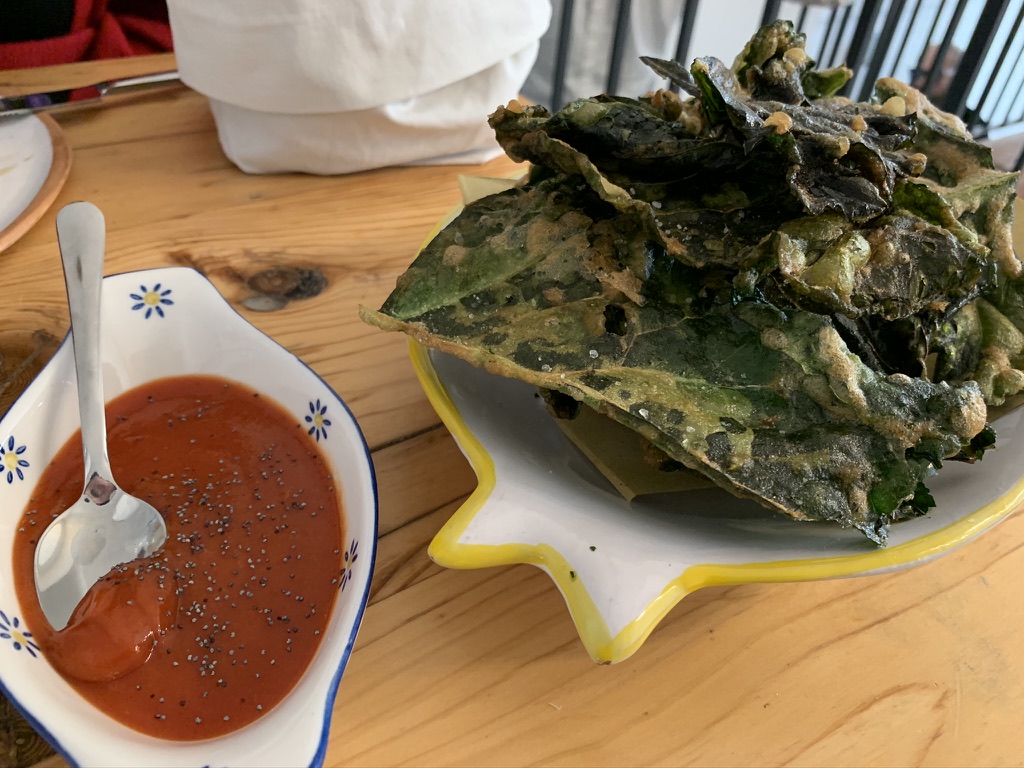 L’orto in tempura che consiste in una frittura croccante delle foglie di tutte le verdure invernali -Masseria Sardo
