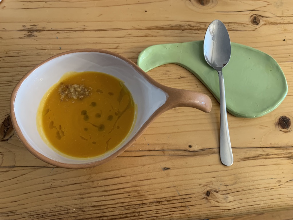 Vellutata di zucca lunga con nocciole e aglio bruciato: delicata e confortante.