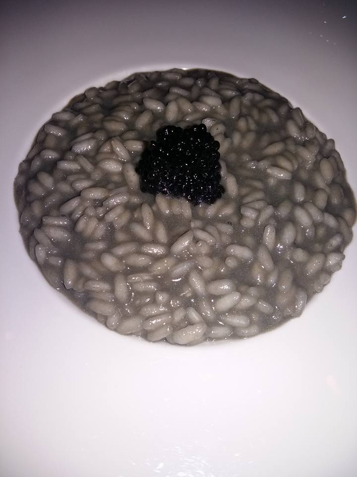 Osteria Francescana, salsa di rapa rossa, lenticchie cotte nel brodo di anguilla e colorate al nero