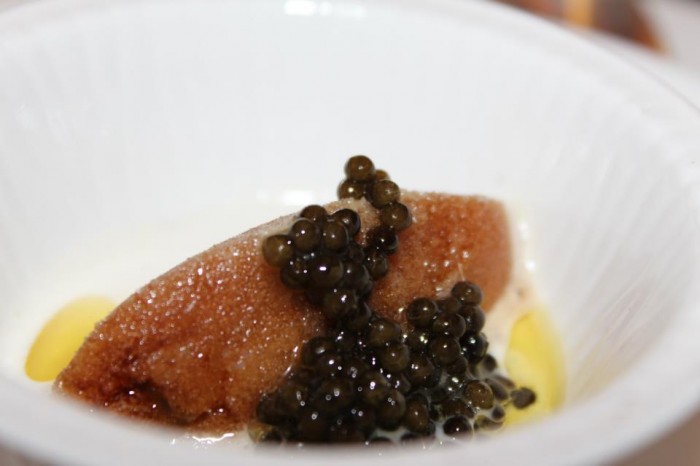 - Cracco, granita di nocino, mandorle e caviale