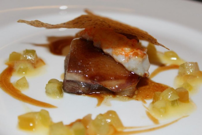- Cracco, musetto di maiale fondente con scampi e pomodori verdi