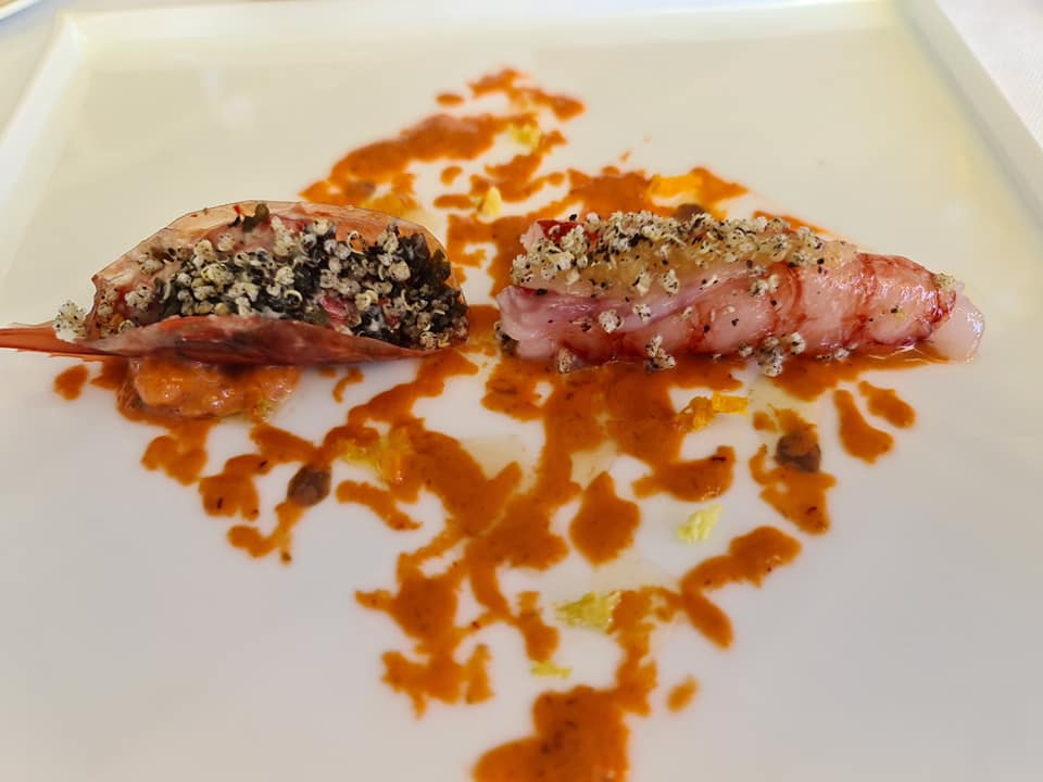 - gambero rosso, cervella di gambero, zenzero, arancia, cannella