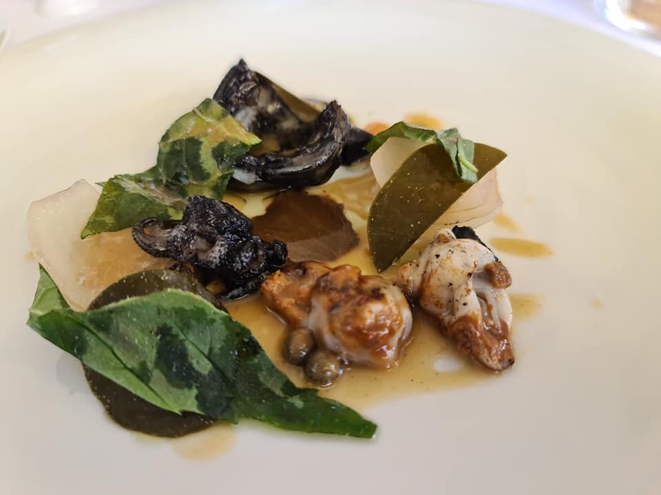 loacker di fegato grasso e nocciole, lardo di polpo aglio e finocchio selvatico, alici e tartufo nero