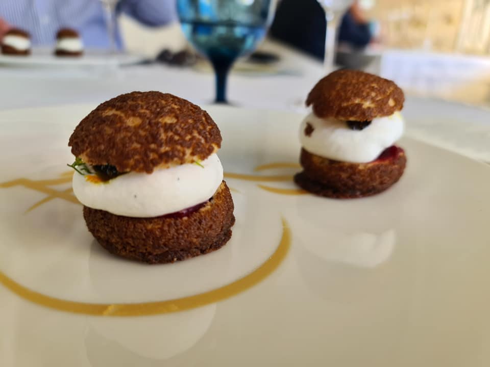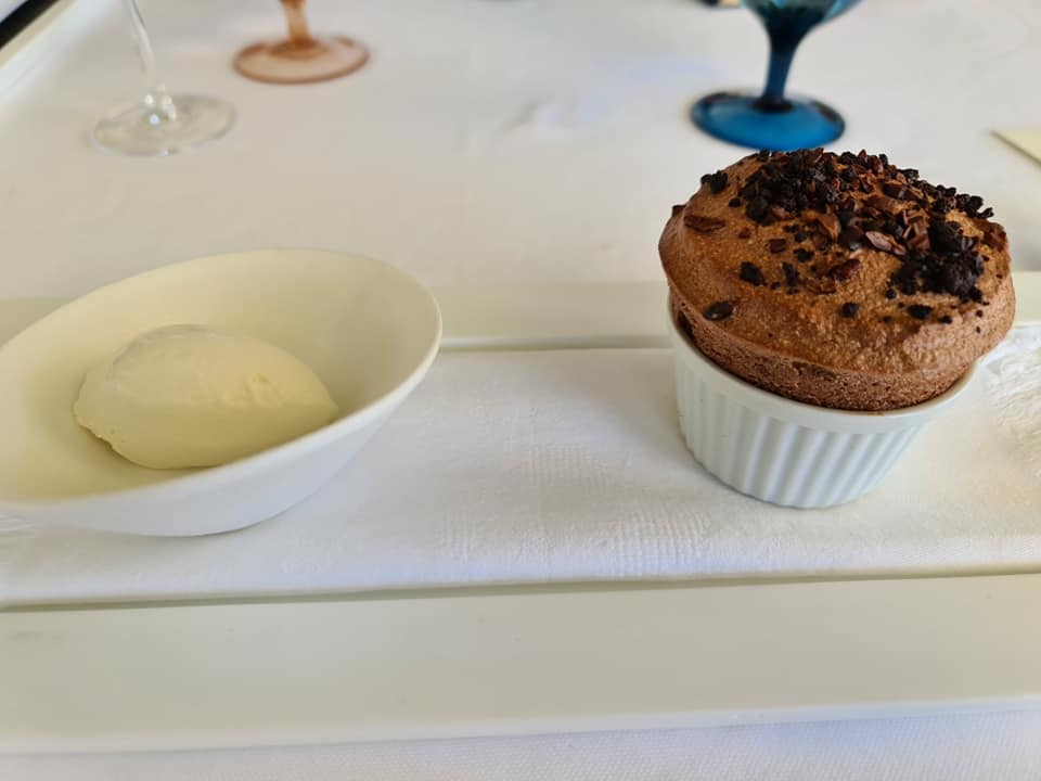 La pasticceria per il terzo anno è curata dal giovanissimo Mattia Casabianca, senigalliese, che avuto esperienze da Paco Torreblanca, dal compianto Michel Roux e da Gordon Ramsay. Fresca e corroborante la granita e crema di chartreuse, melone bianco e menta cristallizzata. Da manuale il soufflé al cioccolato con il delizioso gelato al Lagavulin, che spigiona una raffinata nota torbata. Divertentissimo il Senigallia Brest, non solo per il gioco di parole, perchè è un ponte tra l’anima classica francese e gli spunti che può offrire il Mediterraneo.