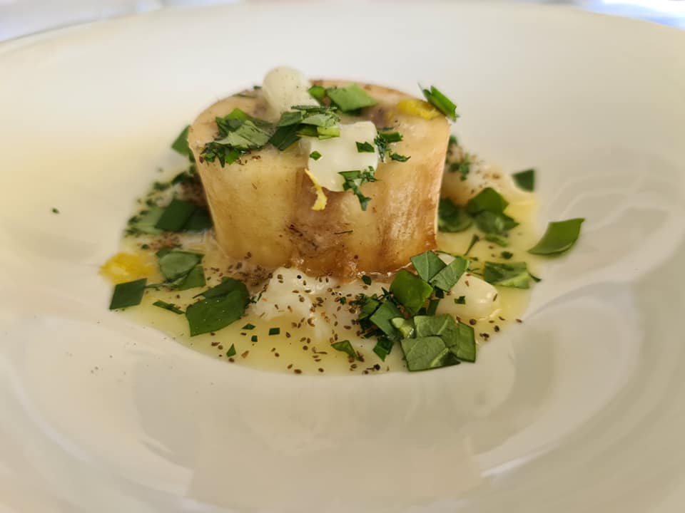 Ossobuco alla marinara. L’ossobuco alla marinara, presente anche nel lab 2019 e 2020, è il collante tra il mondo animale e quello marino. Le trippette di baccalà è il midollo trovano similitudini di consistenza e di gusto per un piatto di grande golosità.