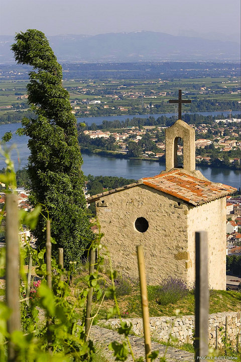 A Mauves, che proprio una meraviglia non è, così vicina ma così lontana dal duetto Tain l’Hermitage / Tournon sur Rhone. In mezzo il Rodano, sinuoso e tranquillo. In alto, incastrato in una ansa del fiume e sovrastante Tain, l’Hermitage, lo sperone di roccia che raccoglie probabilmente la storia più lunga della viticultura francese.
