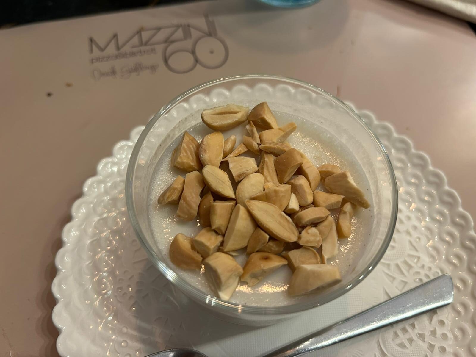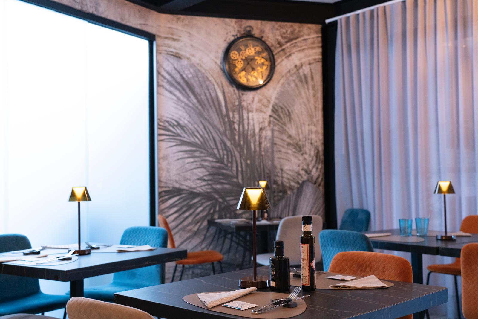 La pizzeria, che tra la sala interna e il dehors può ospitare circa 80 persone, è molto curata negli arredi, lo stile è moderno e i colori richiamano il Mediterraneo con le comode sedie in velluto azzurro così come i divanetti. Il forno è a vista accanto alla luminosa vetrata che separa lo spazio interno da quello esterno. Molto curata anche la mise en place così come l’illuminazione. In sala oltre a Davide (quando non è al forno) e a mamma Graziella, personale giovane e attento ad ogni esigenza del cliente, nel complesso si respira grande entusiasmo per il progetto Mazzini60.